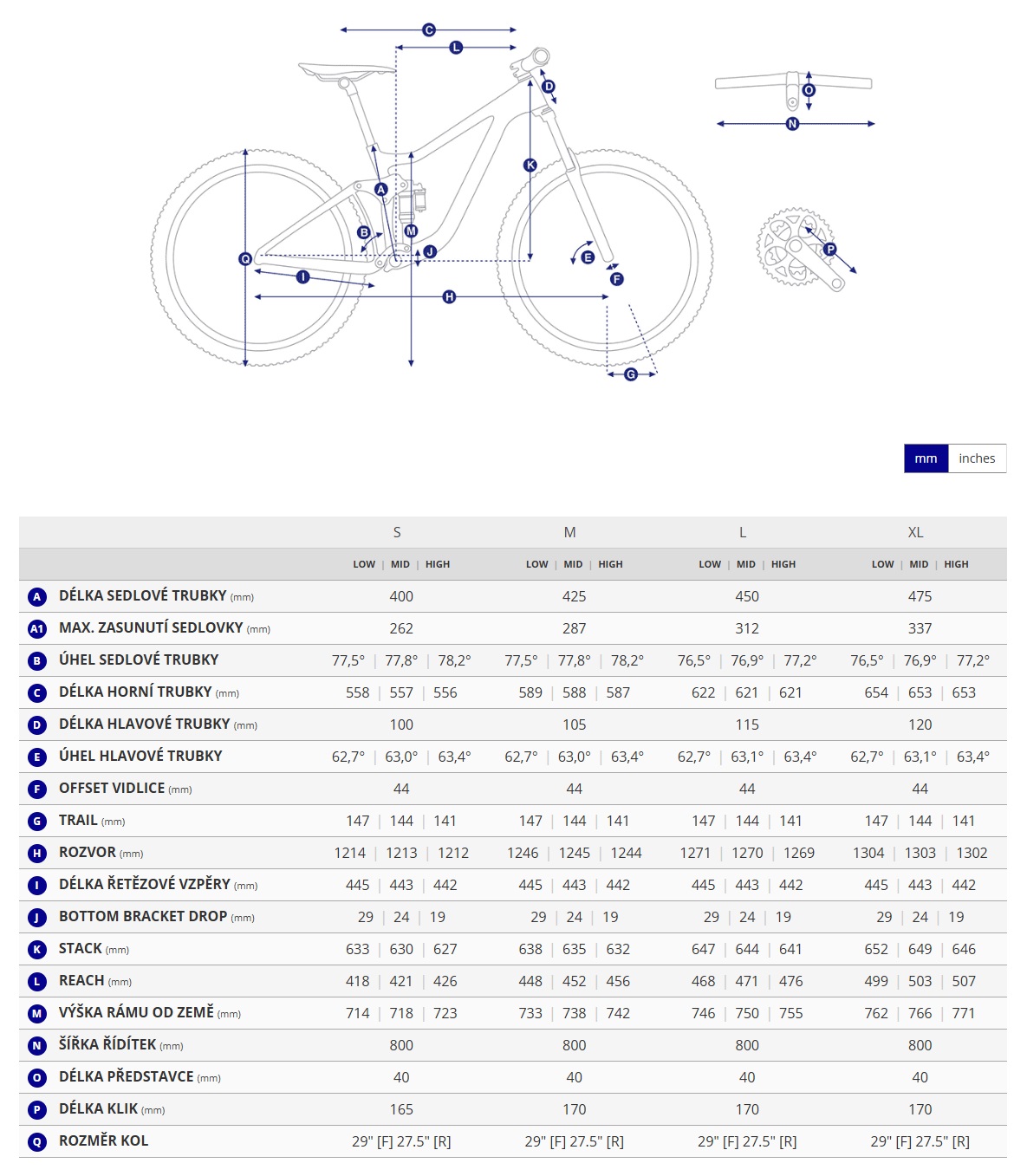 Konfigurace Mullet: Kolo je osazeno kombinací 29 palcového kola vpředu pro jisté překonávání překážek a 27,5 palcového kola vzadu pro maximální hbitost a prostor při manévrování nad zadní stavbou.