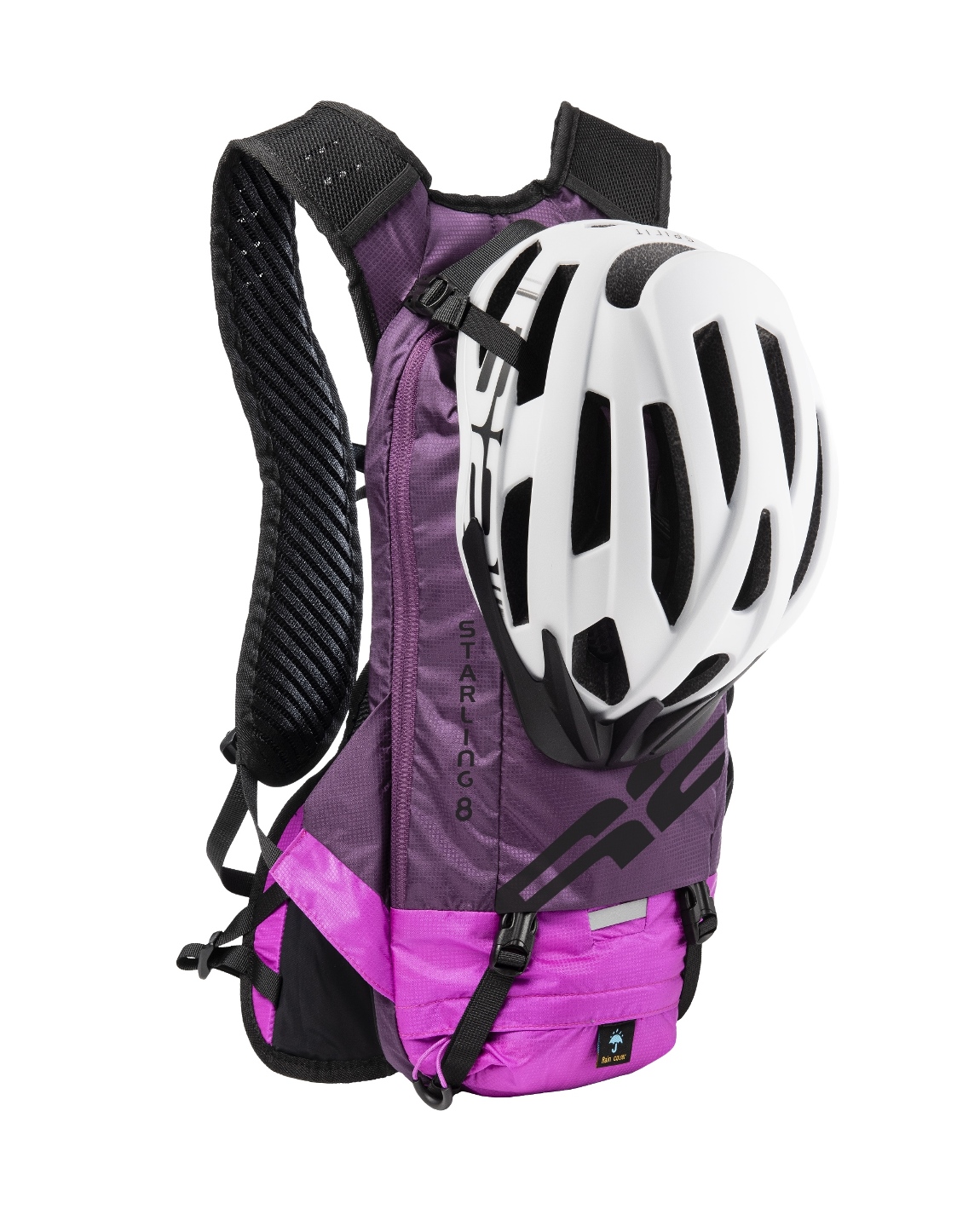 HELMET HOLDER: Bezpečný a pevný držák pro připevnění cyklistické helmy na přední straně batohu.