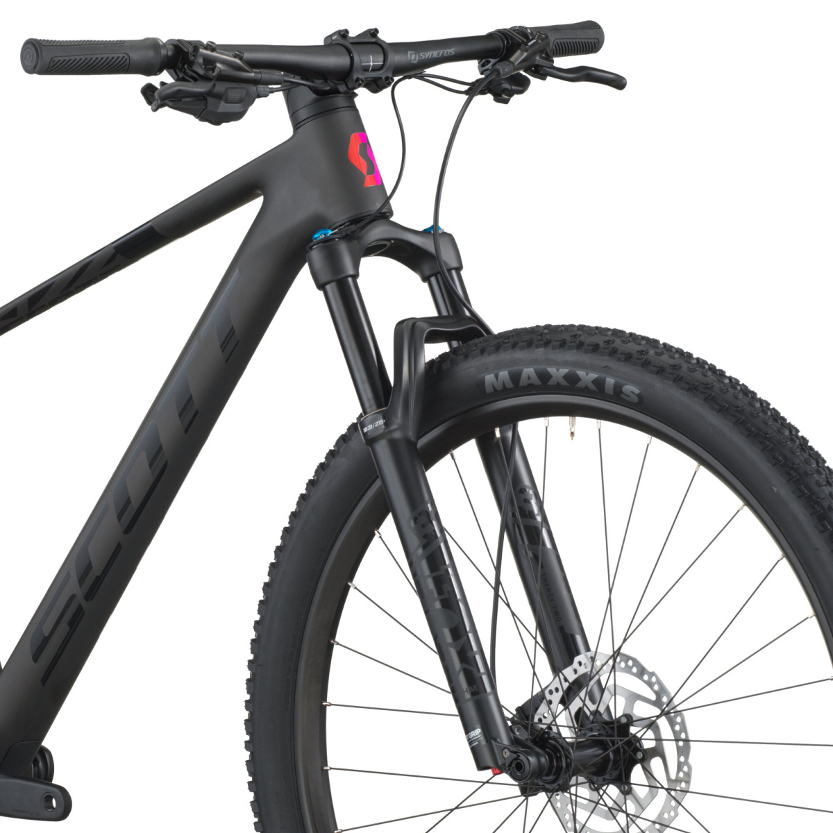 Rám: Scale Carbon HMF, systém integrace kabelů Syncros (Systém CIS), pokročilé tlumení nárazů a stojící polohy (ASDS), BB92, UDH rozhraní, pevná osa 12x148 mm, s řetězovou linkou 55 mm