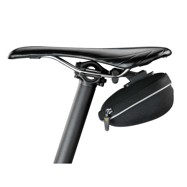 Odolná podsedlová brašna pro jízdu horských terénem. Brašna díky použitému materiálu stále drží svůj tvar a je opatřena po celém svém obvodu reflexní páskou. Díky systému QuickClick je nasazení a sundání brašny otázkou několika málo vteřin.