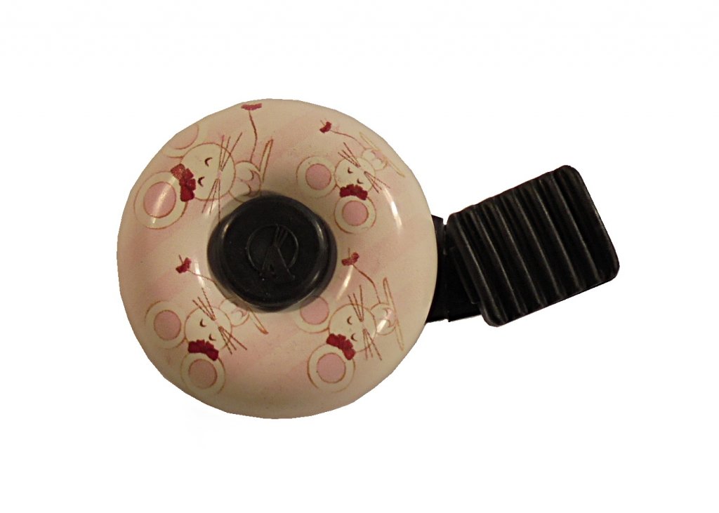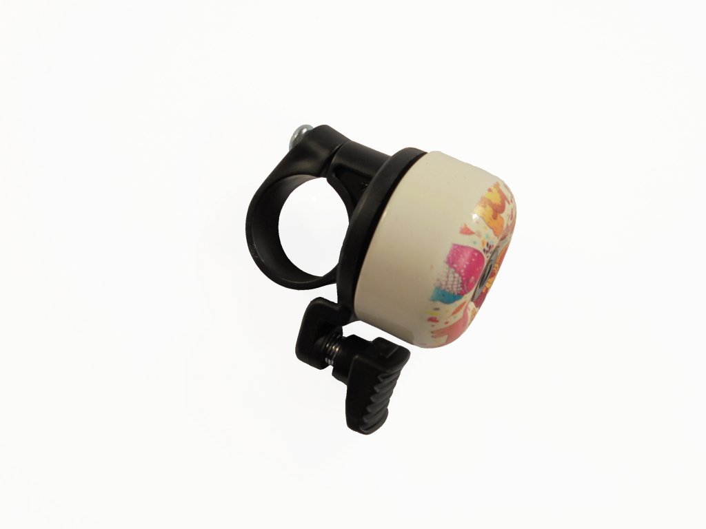 Paličkový klinkací zvonek Velobel^Průměr: 35 mm^Vzor: zvířátka^Materiál: hliník + plast^Hmotnost: 21 g^Objímka: 22,2 mm